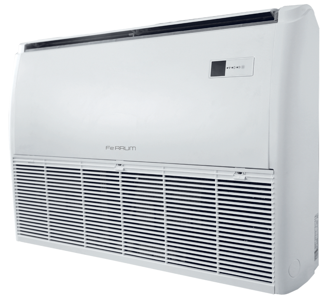 Преимуществом сплит- систем напольно-потолочного типа является возможность универсального монтажа (горизонтальный или вертикальный). Кондиционеры FeRRUM имеют трехслойное антикоррозийное покрытие «Blue Fin», которое улучшает эффективность теплообмена, а также увеличивает срок службы кондиционера.