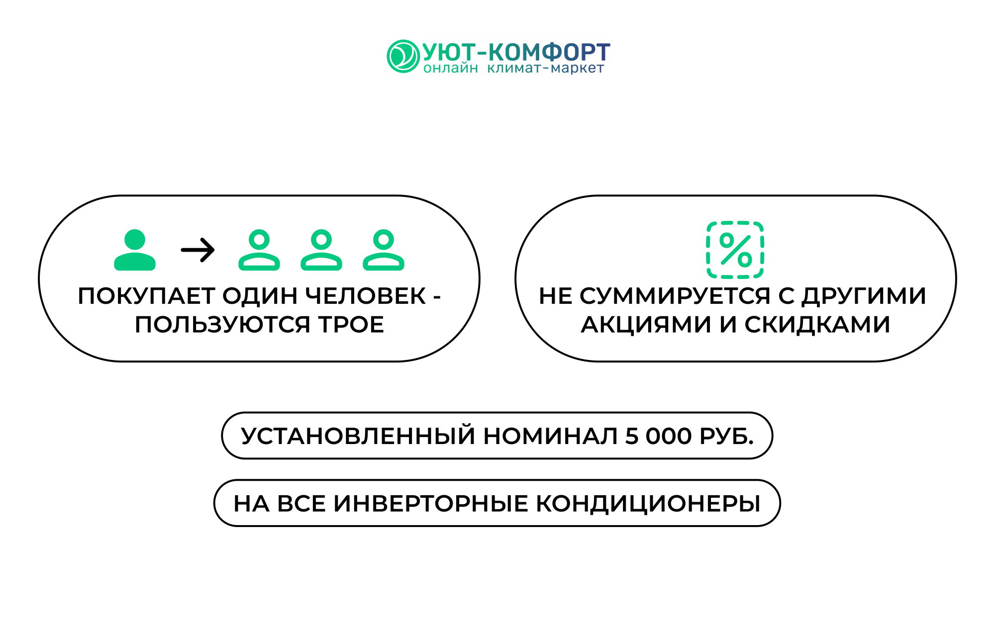 2.1. Сертификат с установленным номиналом 5 000 руб. дает право Пользователю на получение единоразовой Скидки в заявленном размере на приобретение сплит-системы инверторного типа на сайте https://uyut-komfort.com/catalog/konditsionery/nastennye_invertornye_split_sistemy/